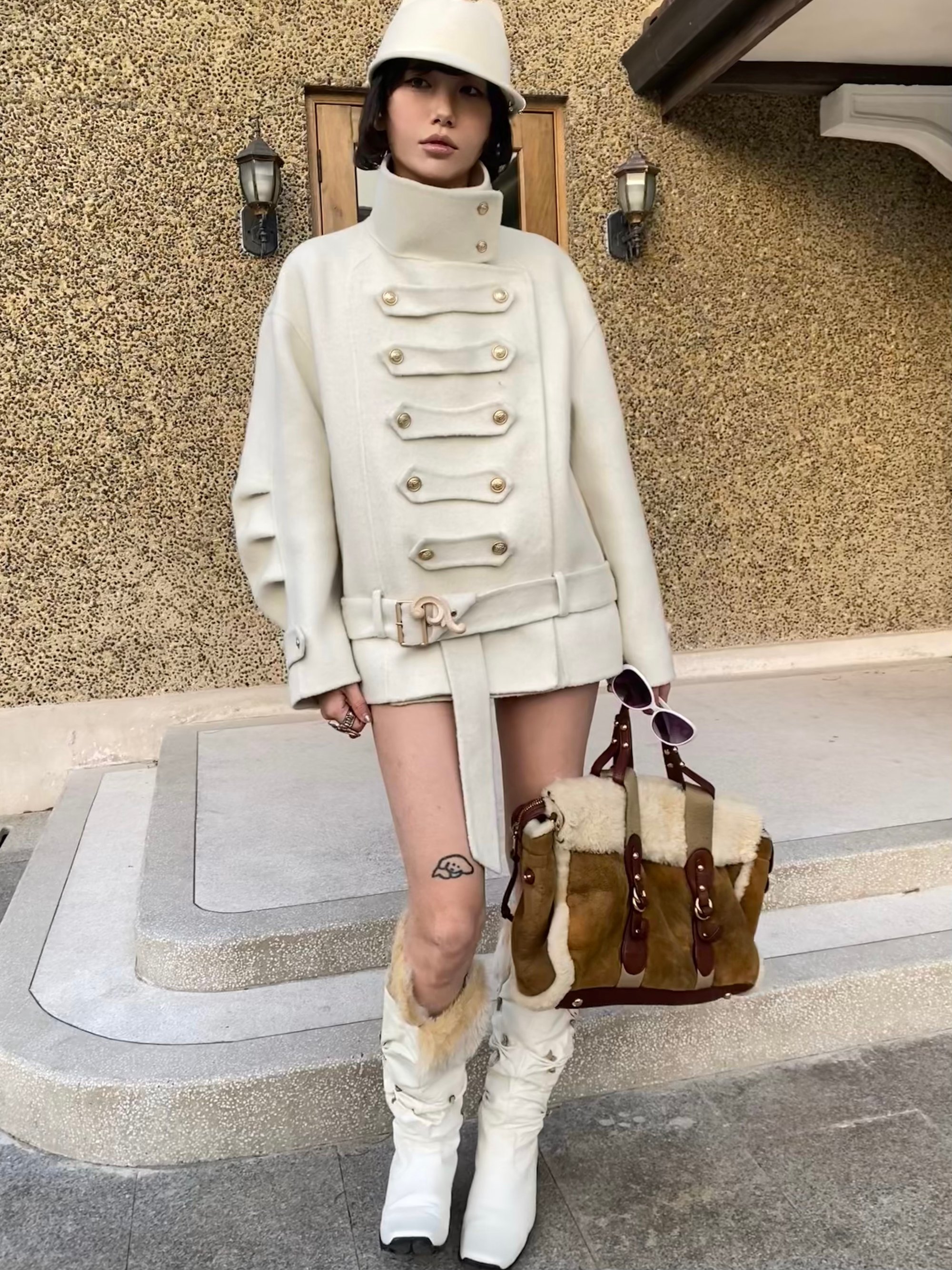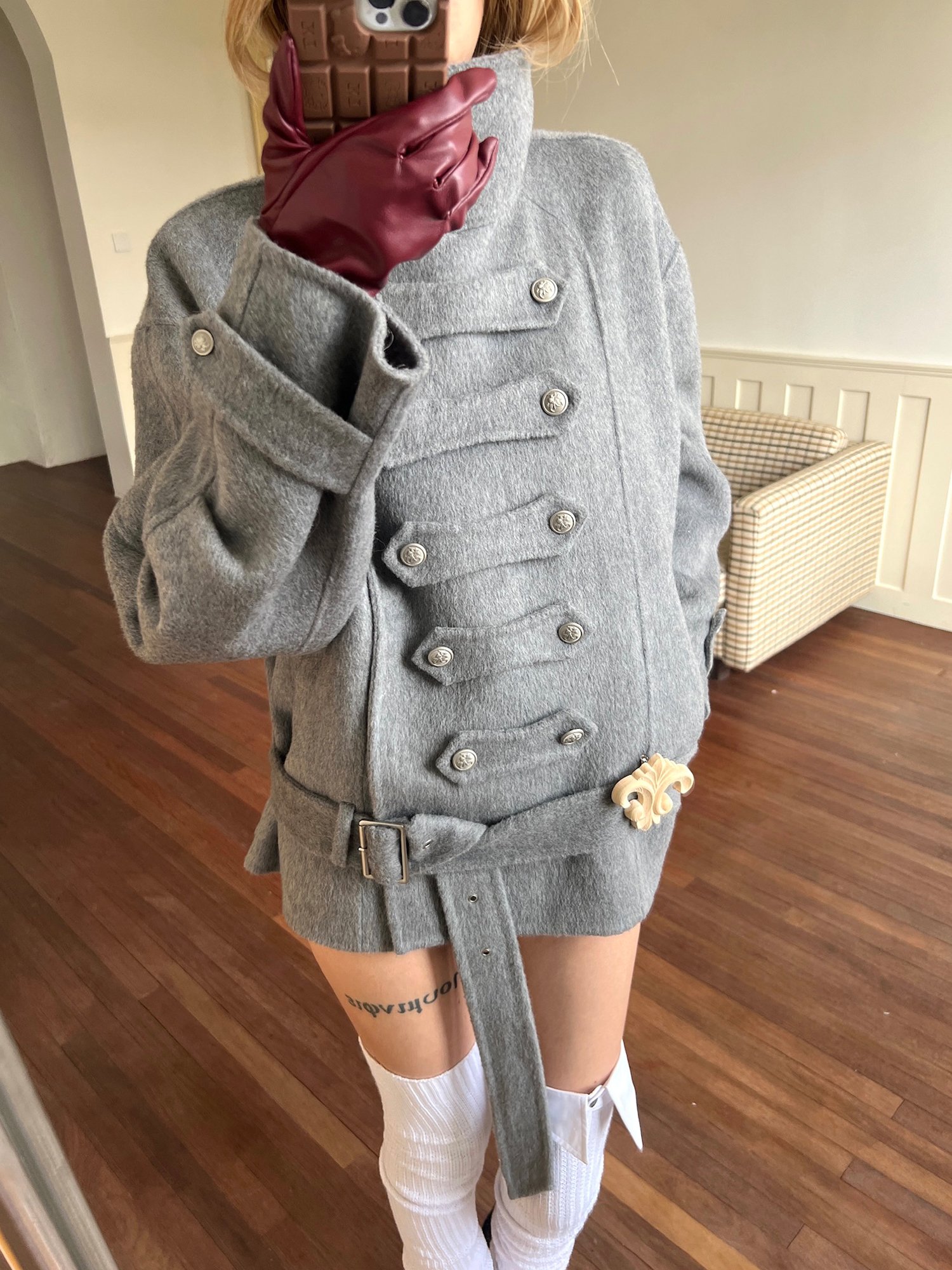 Fabric composition:50% wool (hand-stitched double-faced wool), 50% polyester
