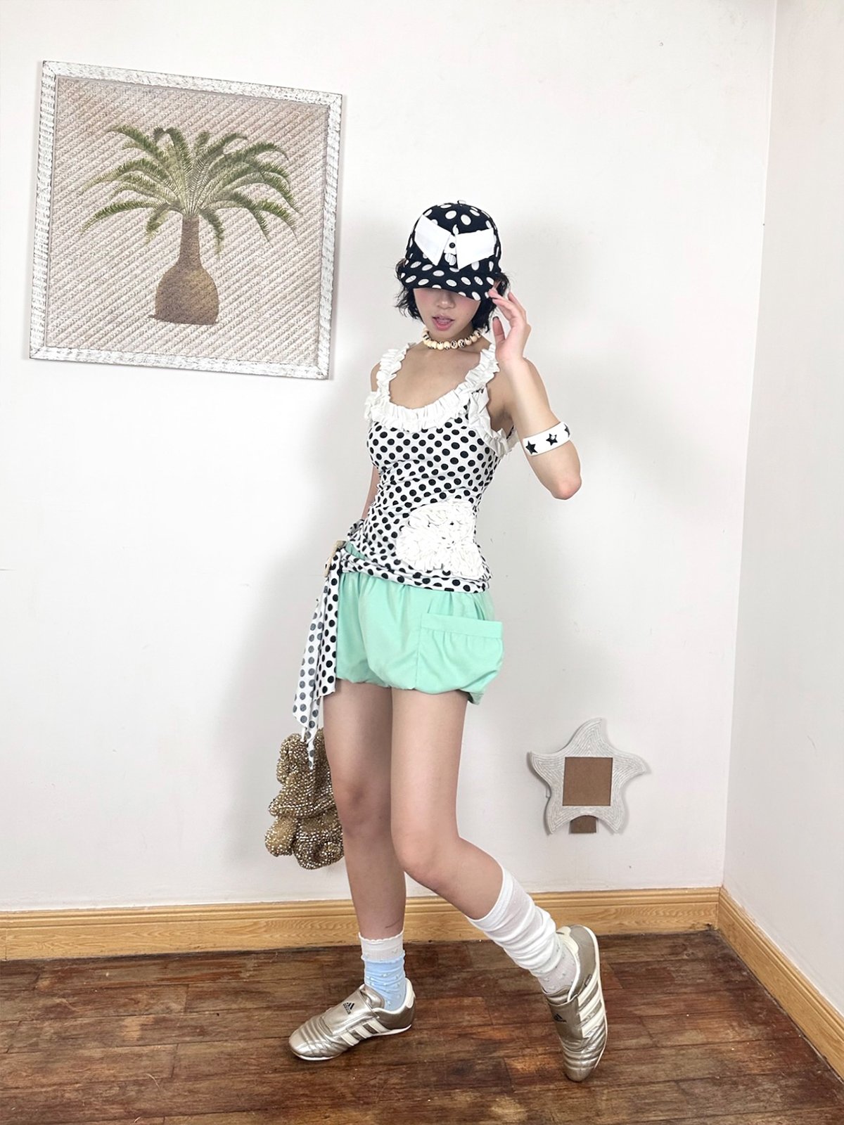 Handmade lace floral polka dot tank top